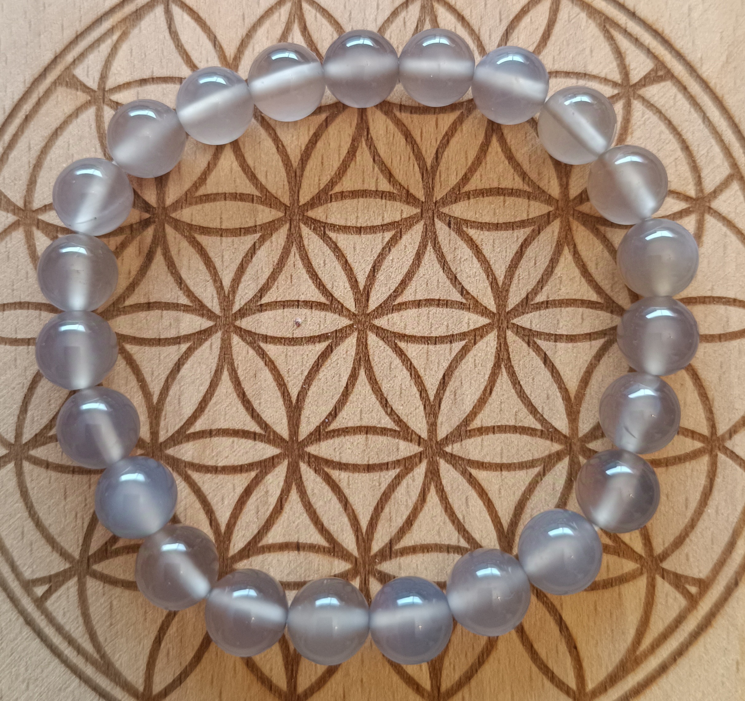 Au-delà de son esthétique, elle est reconnue pour ses propriétés apaisantes. Elle aide à calmer l’esprit, réduit le stress, et favorise l’équilibre émotionnel, ce qui en fait un parfait compagnon de vie. Porter ce bracelet c’est aussi se reconnecter à soi-même, retrouver une stabilité intérieure et renforcer sa confiance. Les perles de 8 mm offrent un confort optimal et une belle présence au poignet, sans être trop imposantes.