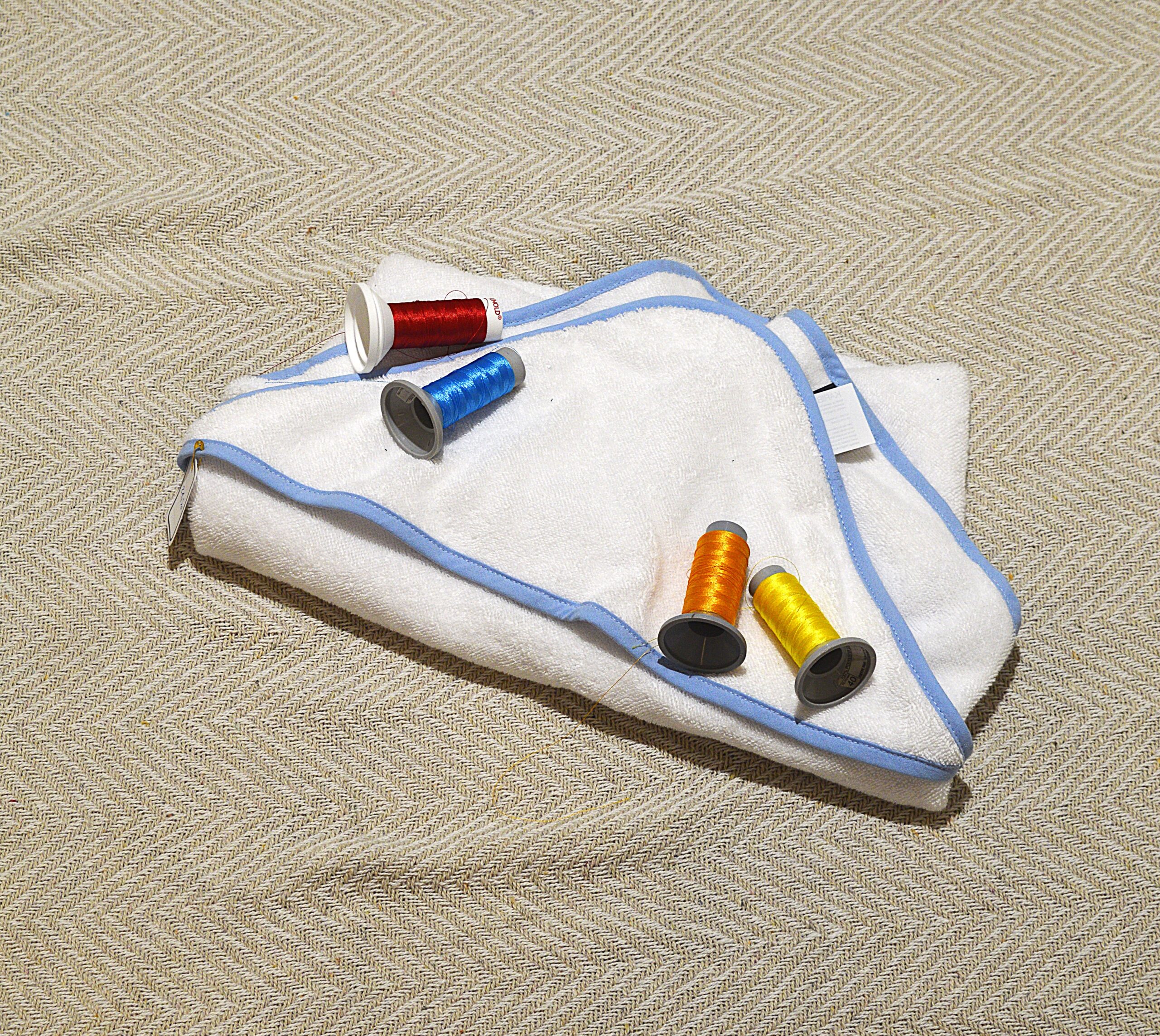 - Avec capuche et biais contrasté sur les bords.